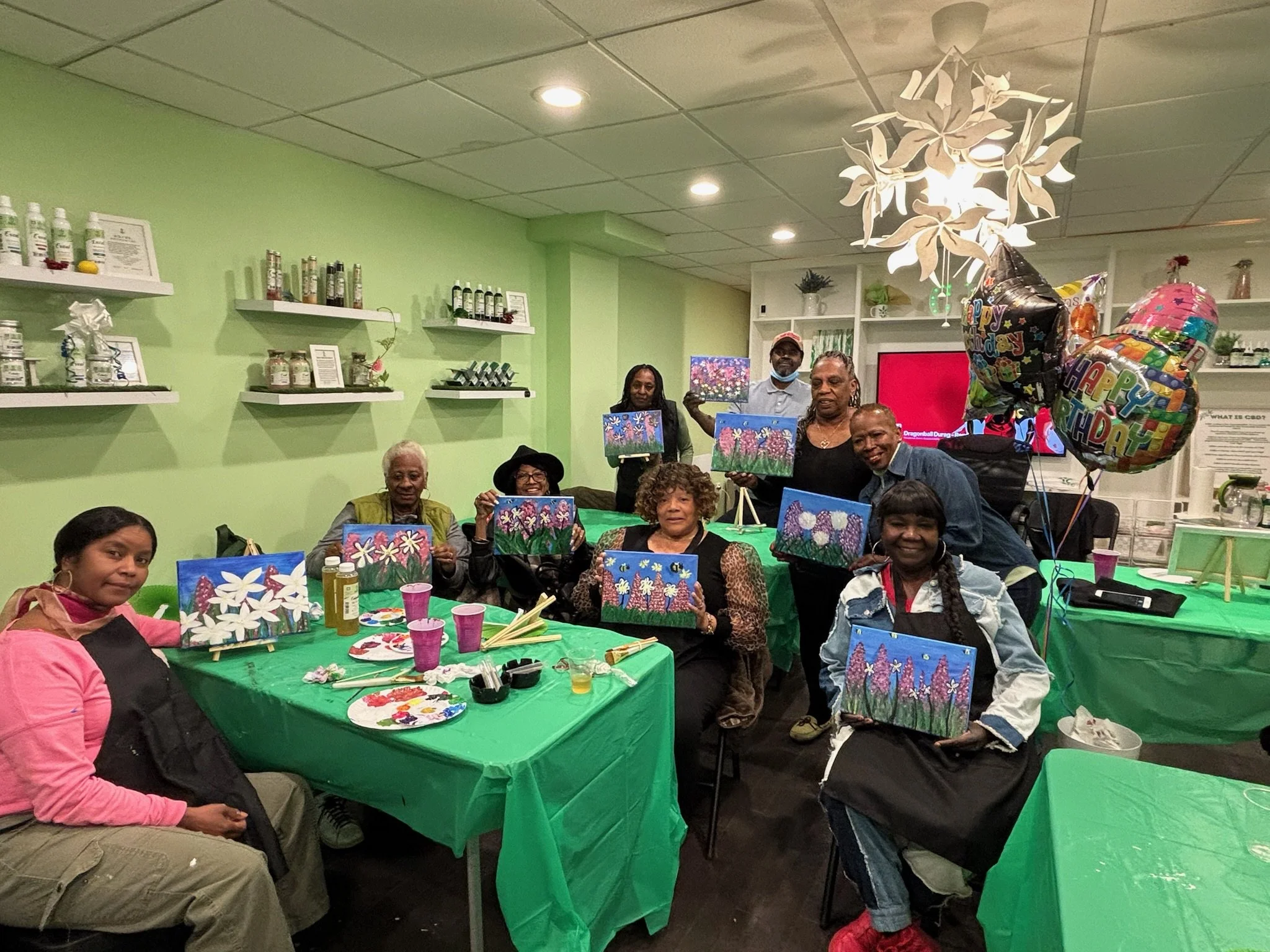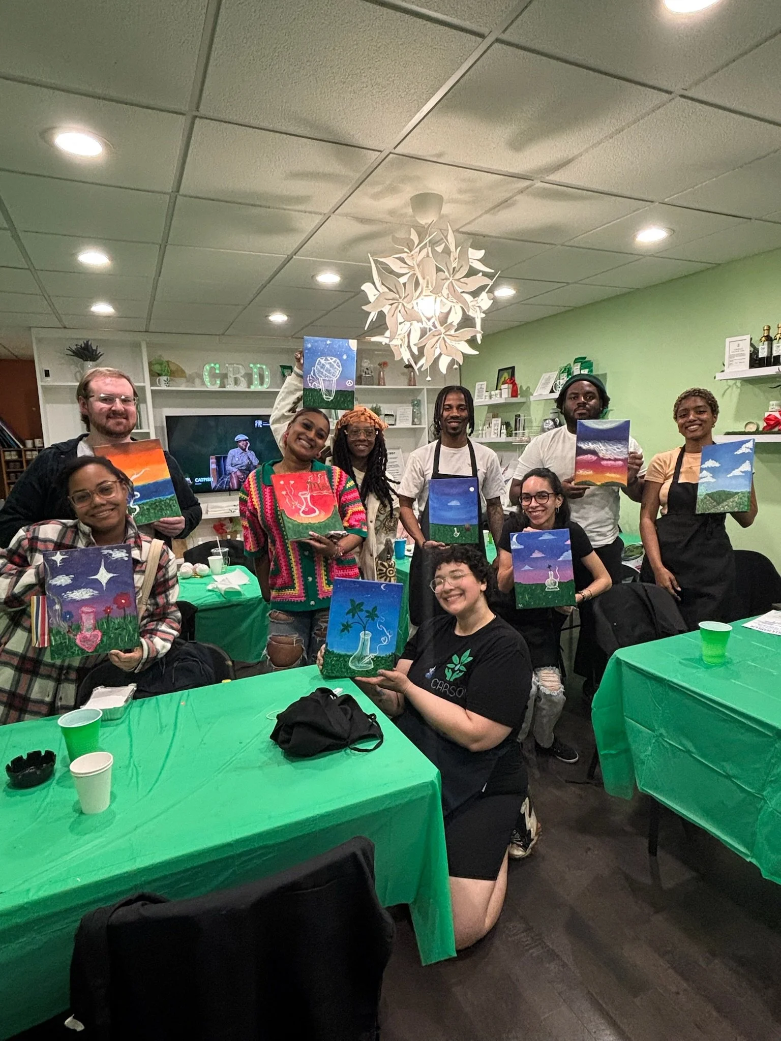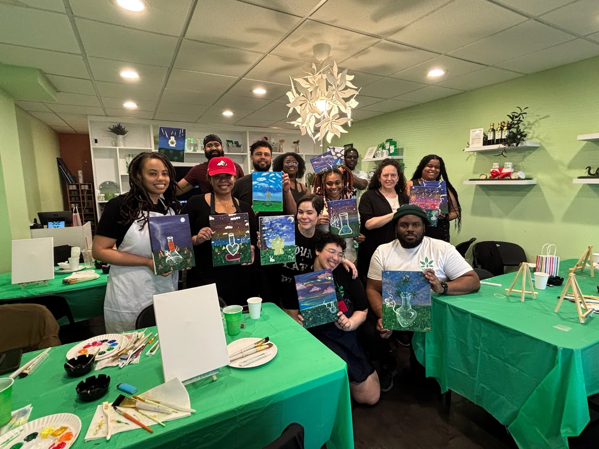 I’m excited to share my journey of teaching beginner painting classes! As someone who truly believes in the power of art as a therapeutic tool for mental health, I am passionate about offering accessible and enjoyable art experiences to my community and beyond. My adventure began when I teamed up with my partner to host Puff and Paint classes at his family’s CBD store. This innovative setting allowed us to create a relaxed and inviting environment where participants could express themselves through art while enjoying some delightful treats from the store. The response was so positive that it grew into a monthly event, where I guide attendees in creating their own paintings while they indulge in snacks and connect with others. In addition to our monthly classes, I’ve expanded my offerings to include private group sessions, both through the store and as a freelance instructor. Each class is fully equipped with all the necessary art supplies and step-by-step instructions on how to create themed paintings. It’s incredibly rewarding to see beginners turn blank canvases into beautiful expressions of their creativity. I’m excited to continue sharing my passion for art and mental wellness, and I look forward to seeing more individuals discover the joy of painting with me!